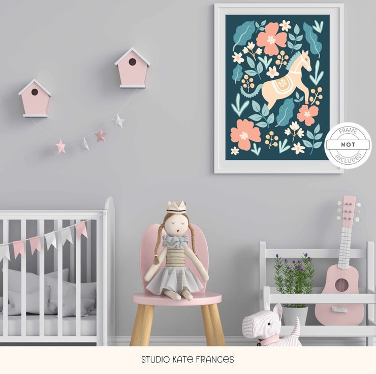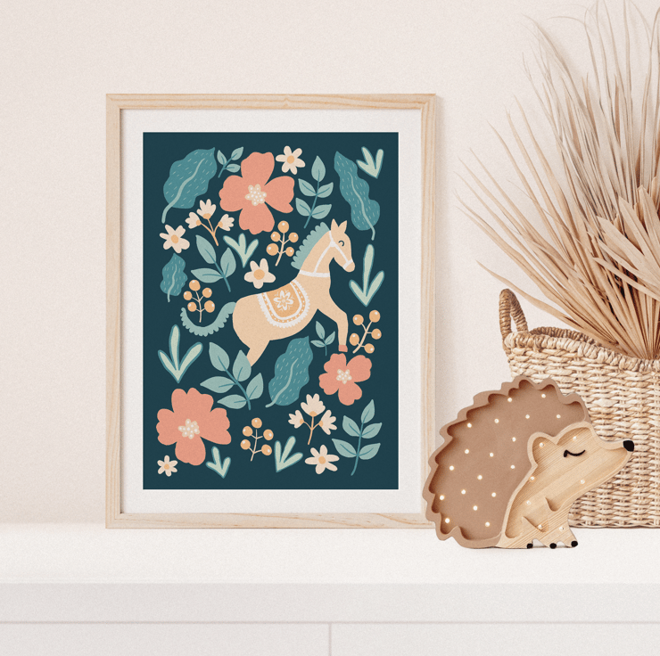 Midnight Dancer is a beautiful hand-drawn unicorn illustration that will add a touch of magic and enchantment to any nursery or children's room. It's the perfect addition to create a whimsical and imaginative atmosphere for your little ones.