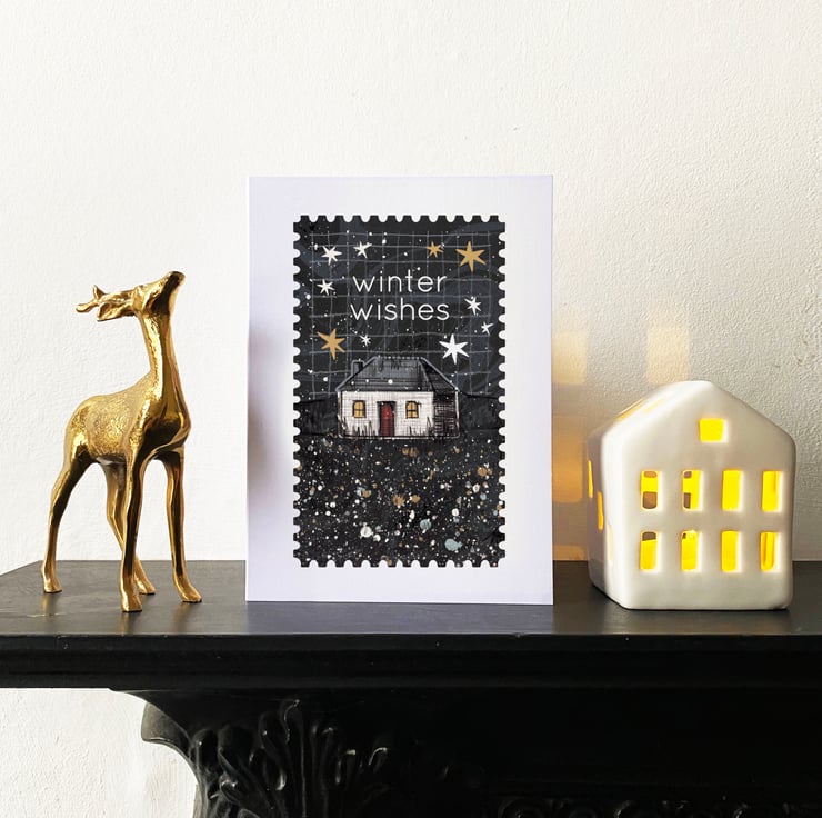The cosiest wintry Christmas card. Originally hand drawn with pencil and a selection of handmade textures.