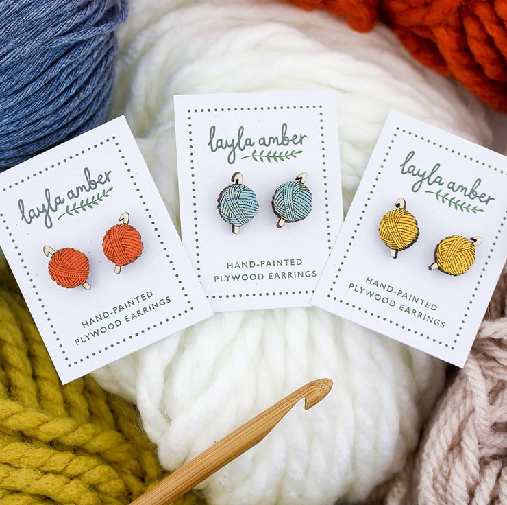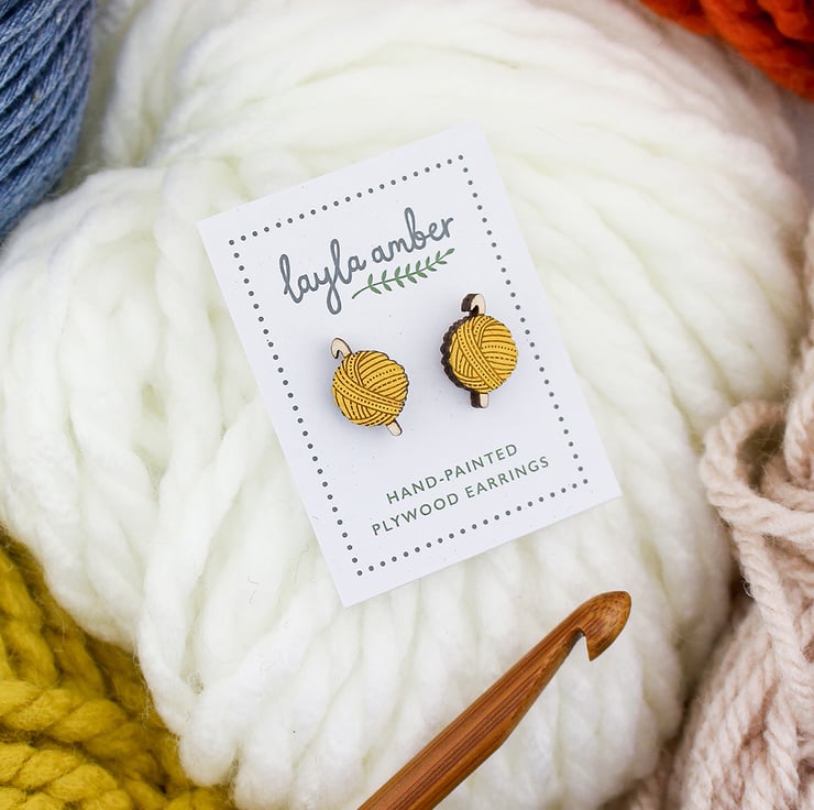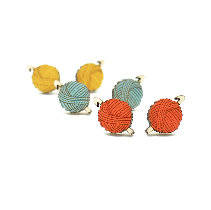 Perfect for those who love to crochet! These cute stud earrings feature a ball of wool in three pretty colours. Please choose your colour from the drop down menu.