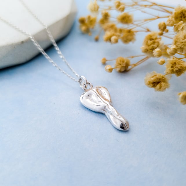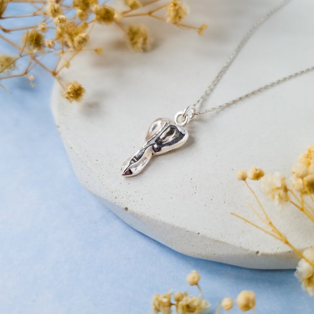 I start by using a real flower to create a finely detailed mould, which I then use with silver clay to create a perfect impression of the flower. The clay is then fired to create solid fine silver, before being polished to a high shine.