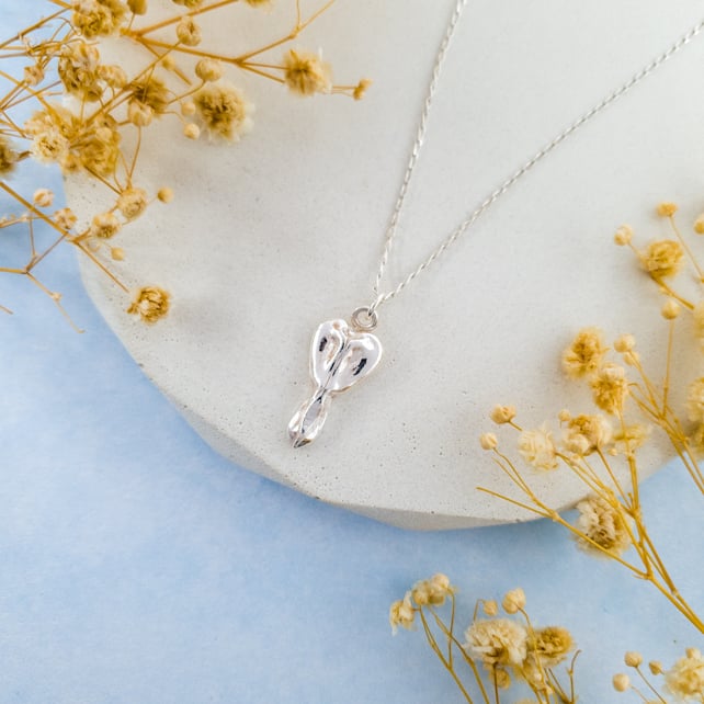 This beautiful bleeding heart pendant is cast from a real bleeding heart flower and handcrafted in recycled fine (99.99%) silver.