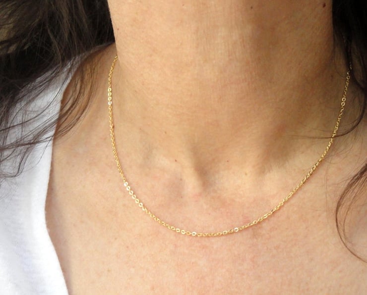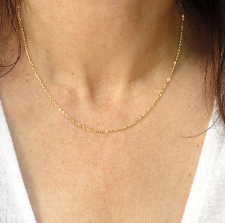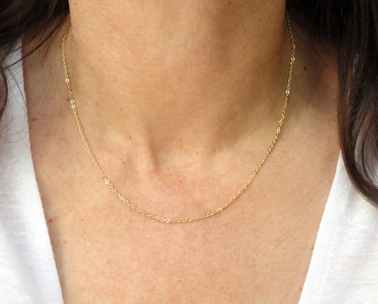 This listing is for an elegant gold necklace. It comprises a single strand of gold fill chain and closes with a gold fill clasp. It has a small extender chain for slight adjustment longer.