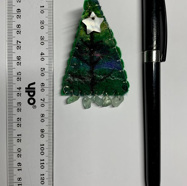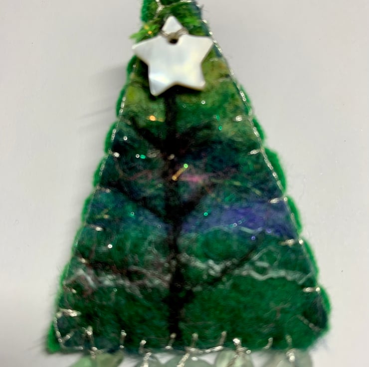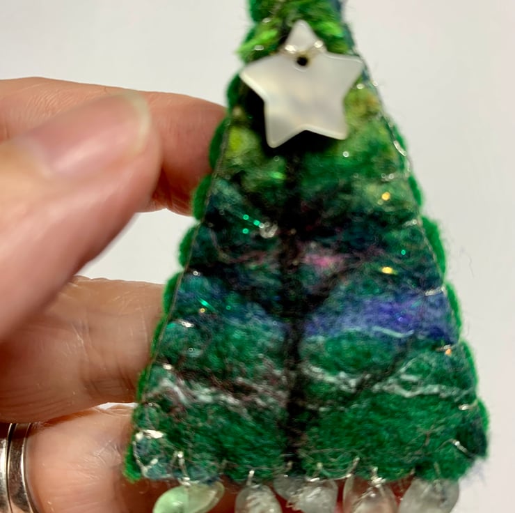 Hand felted in merino wool, embroidered and embellished with 5 pretty crystals and a mother of pearl star.