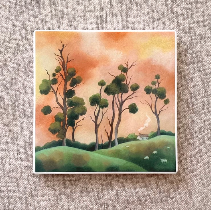 This unique ceramic coaster has a lovely, smooth sandstone finish, with a cork back (please see last picture). It shows off my delicate and atmospheric 'Mistletoe Trees' illustration beautifully. I created the original artwork using a combination of pencils and chalk pastels..