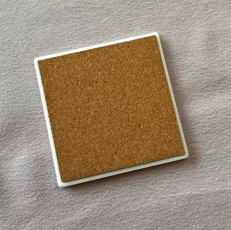 Coaster size is 108x108x5mm (plus 2mm cork on back).