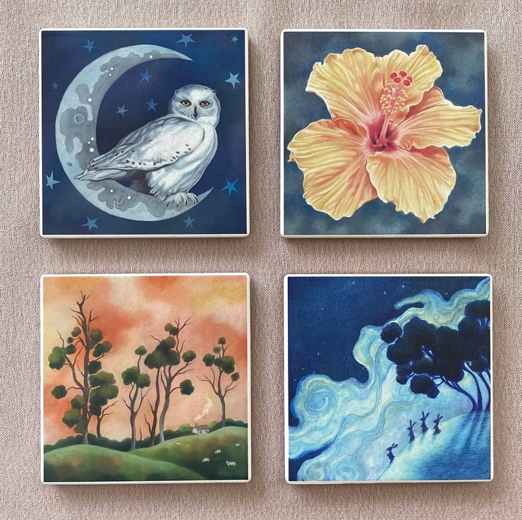 It works beautifully with any of my other coasters: 'Midnight Owl', 'Moonlit Rabbits' or 'Mistletoe Trees' or as a stand alone piece.