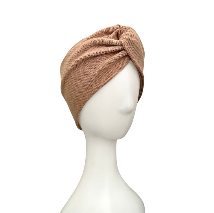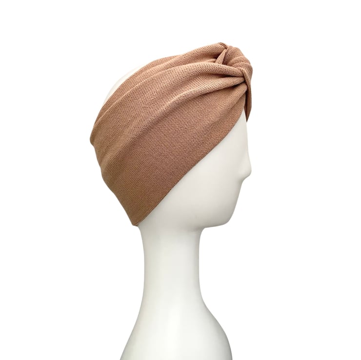 Camel beige brushed wool turban twist headband Fall clothing Soft autumn warmer