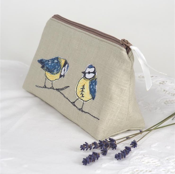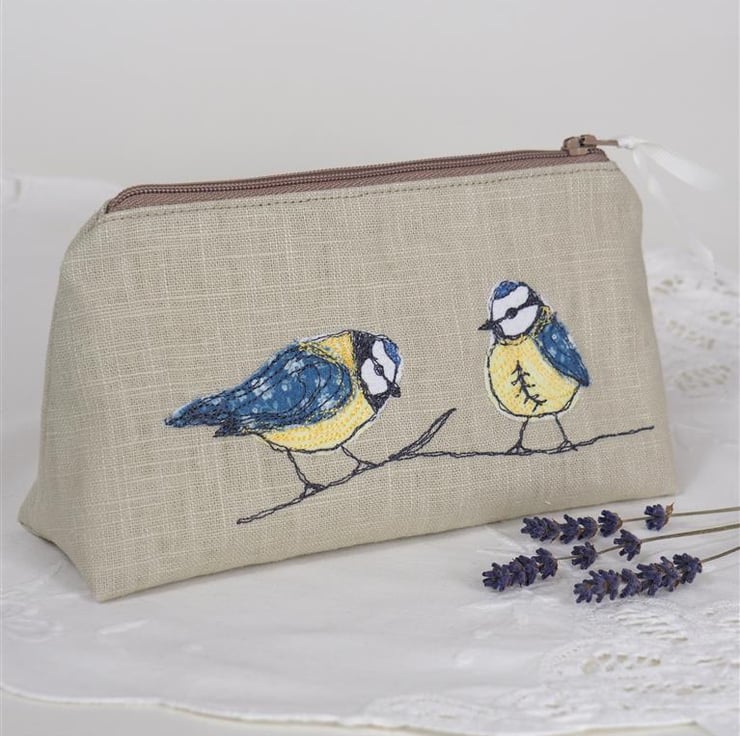 Make Up Bag Cosmetics Handmade Blue Tit Nature Wildlife Bird