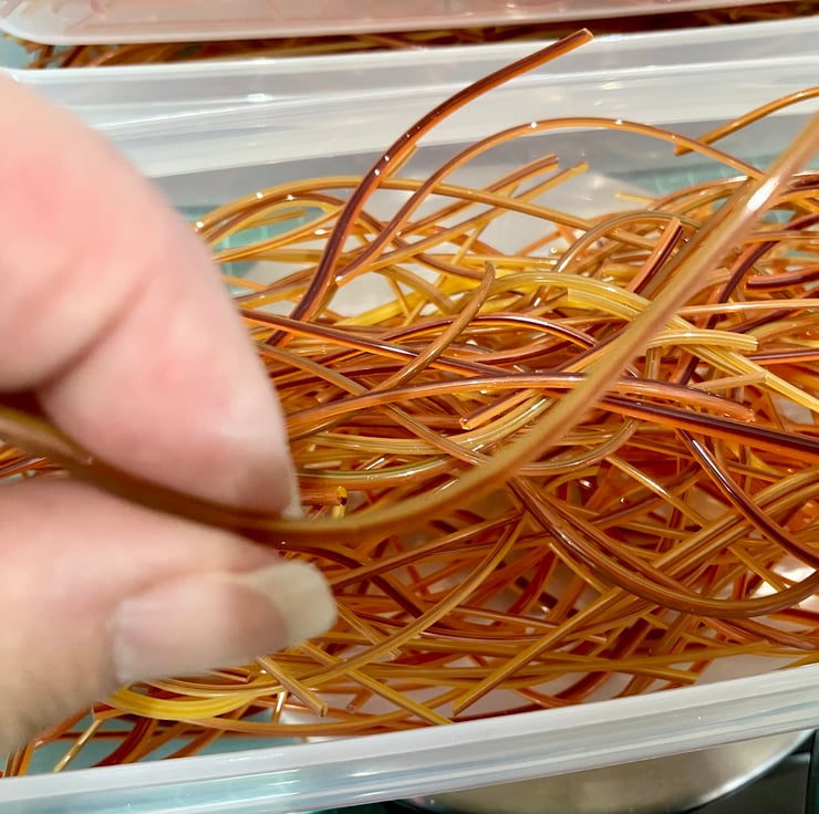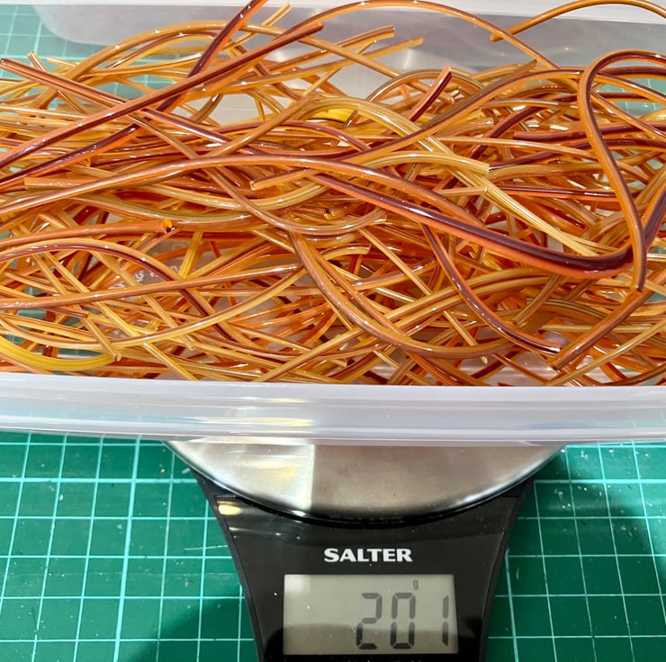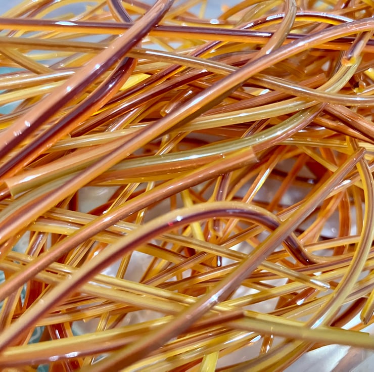 Mixed ‘rich amber’ colours Bullseye coe90 glass Vitrigraph stringers.