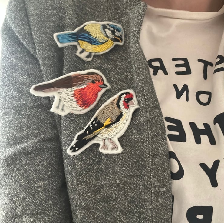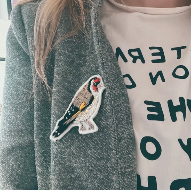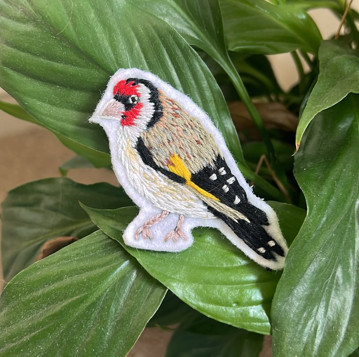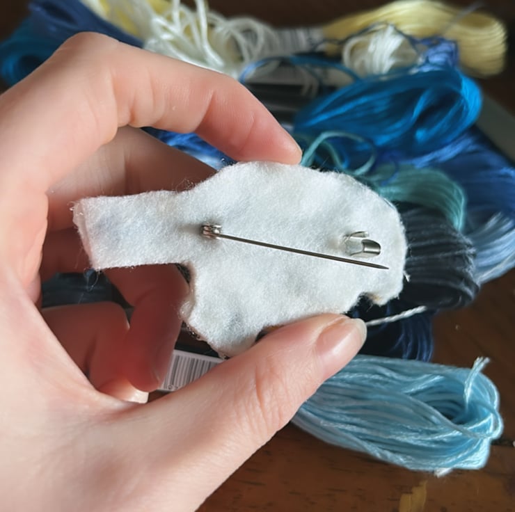 Approx. 3cm x 6cm this small brooch was hand stitched by Sophie one rainy afternoon.