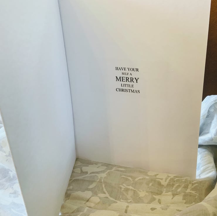 A very cosy christmas snowman in a A5 white framed card which is of high quality with an embossed design. This card can be picture framed and kept for a forever Christmas keep sake for many Christmas to come.