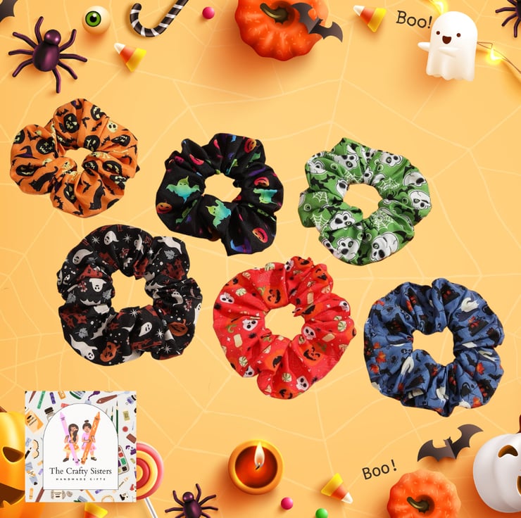 Blue Halloween scrunchies. There is a button inside the Scrunchie which you can press to make the Scrunchie light up!