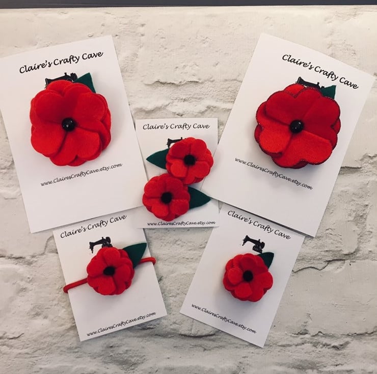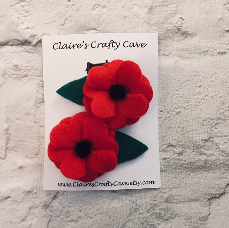 Small plain poppy hair clips, approx. 1.5 diameter, set of 2 on crocodile clips