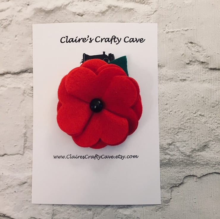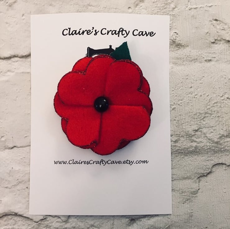 Large sparkly poppy brooch, approx. 2.5 diameter with a little added sparkle to the edges