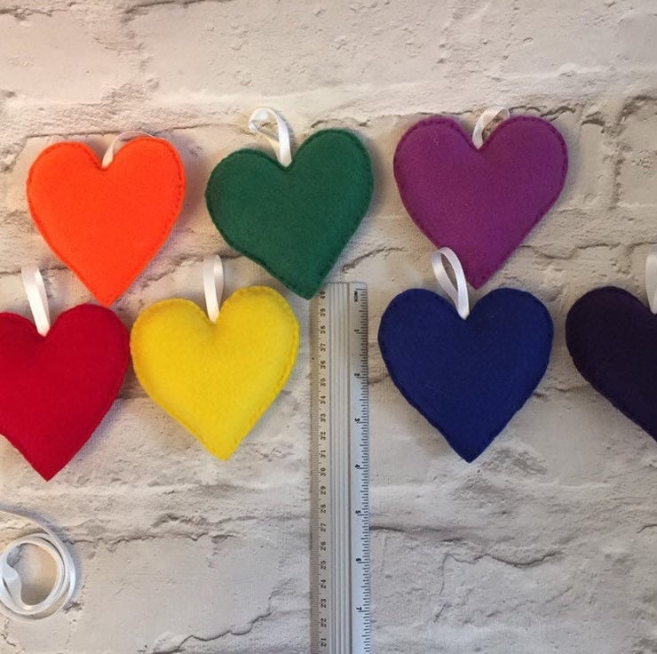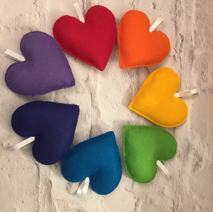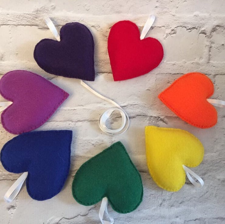 Rainbow heart felt garland, Pride decoration, nursery decoration, felt garland,