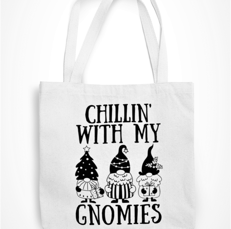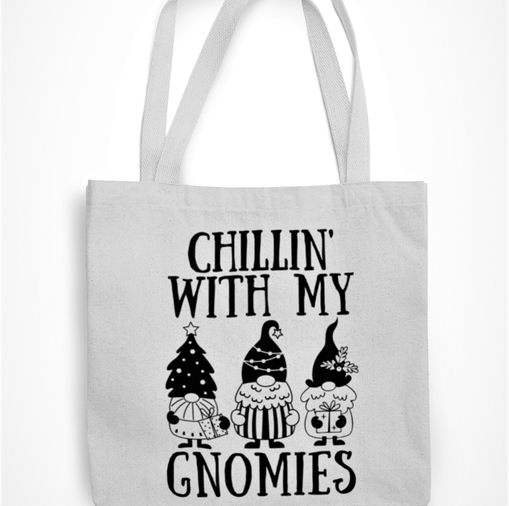 Chillin With My GNOMIES - Novelty Funny Christmas Tote Bag