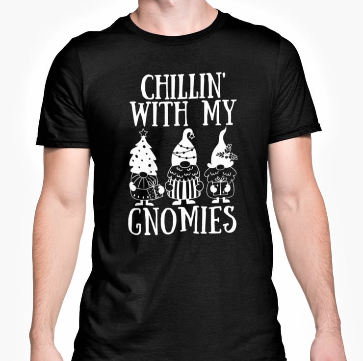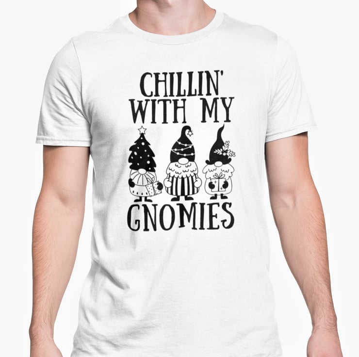 Chillin With My GNOMIES Christmas T Shirt- Funny Joke Friends Banter Present
