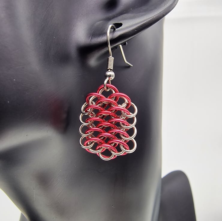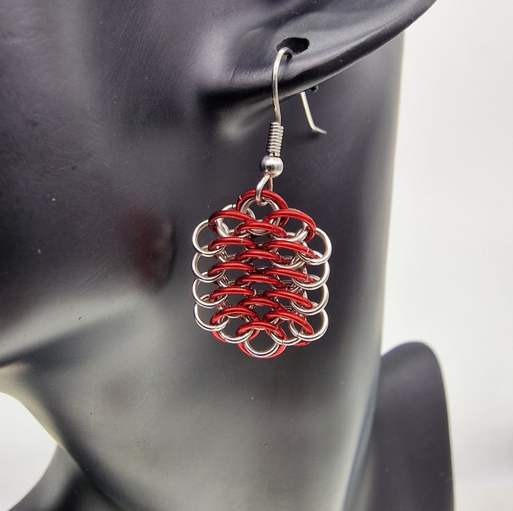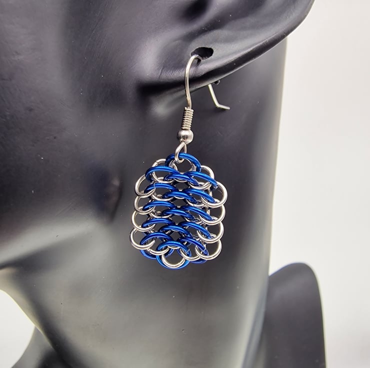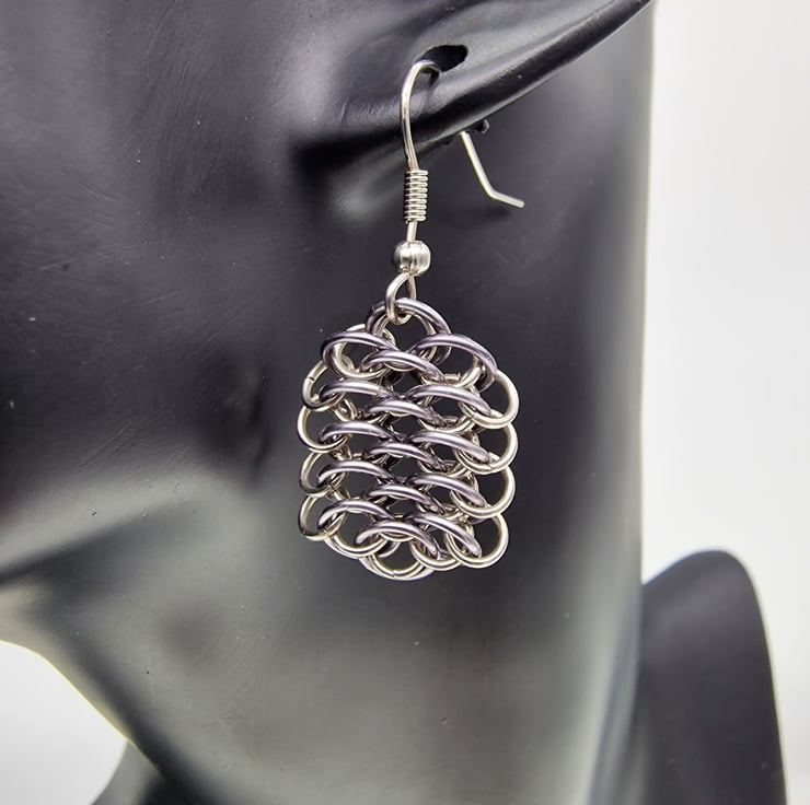 Created using anodised aluminium and stainless steel, these earrings feature a drop length (without hooks) of 25mm and 38mm with hooks. Constructed with 316L surgical steel earring hooks for improved strength and to reduce the risk of allergic reactions.