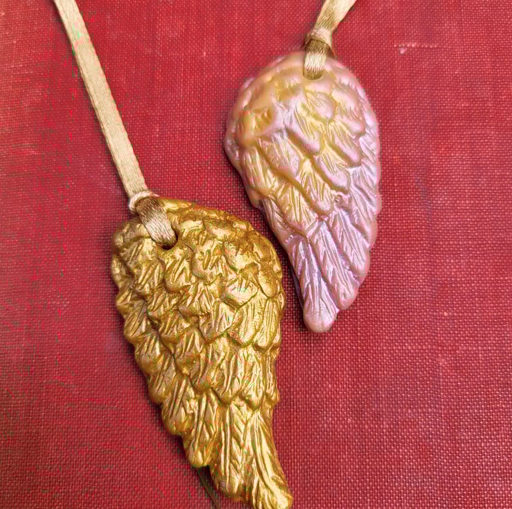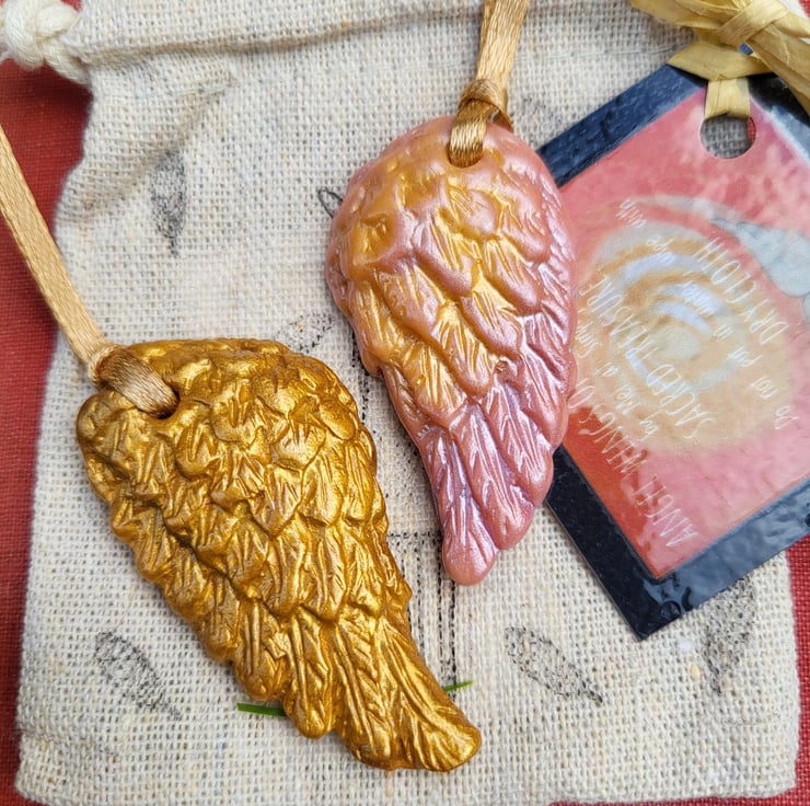 Your two angel wings are presented in a small cotton bag ready for gifting.