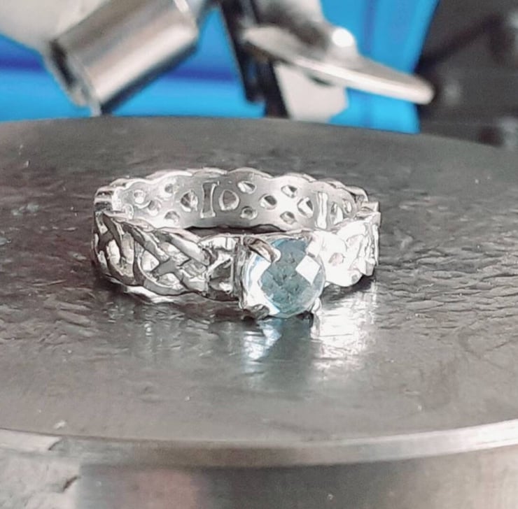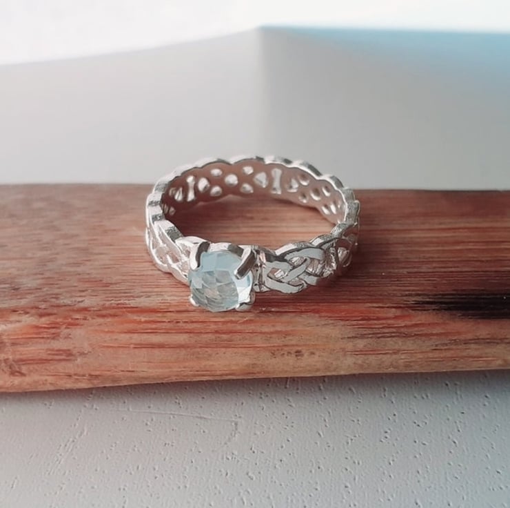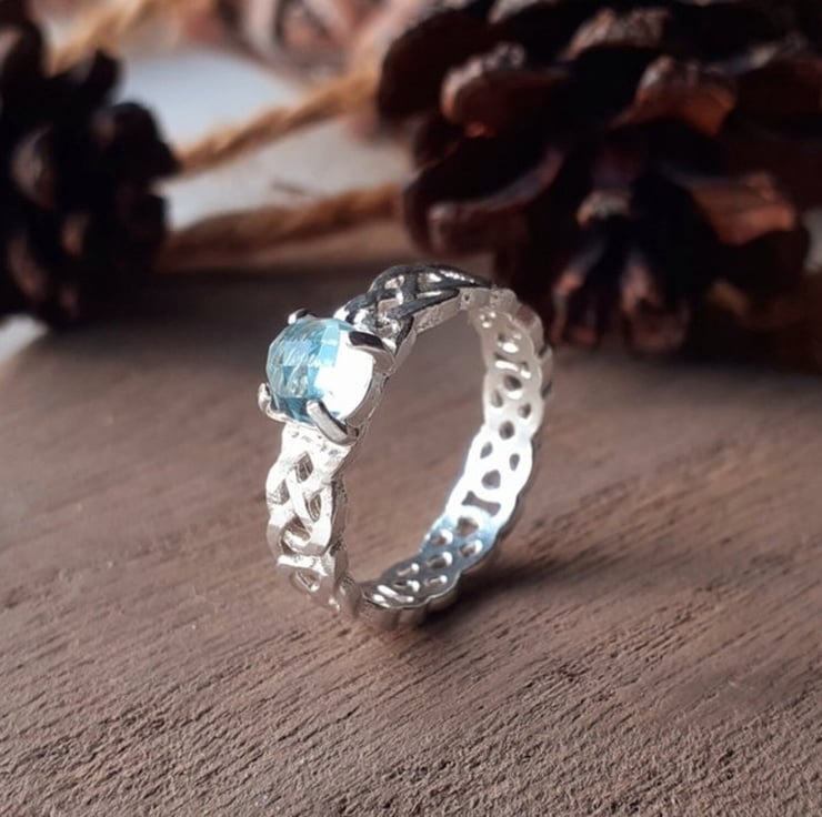 Recycled Sterling Silver Topaz Celtic Knot Ring, Handmade in Scotland