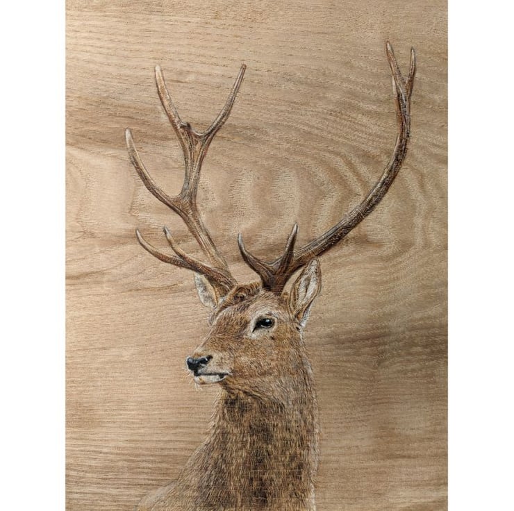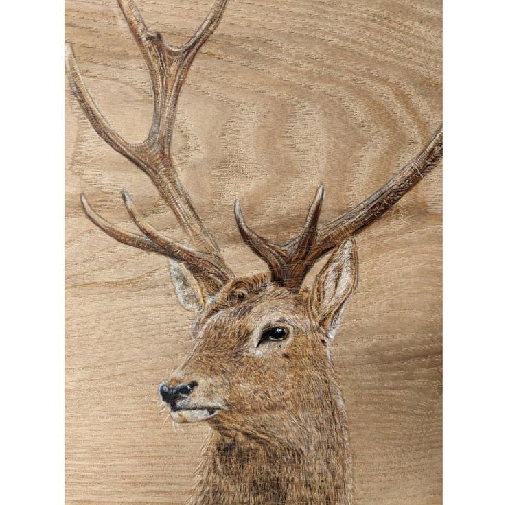 The wood itself was planed to create a smooth surface to work on but the rest has been left in its natural state. On completion it's been sprayed with a light varnish to offer artwork protection and longevity.