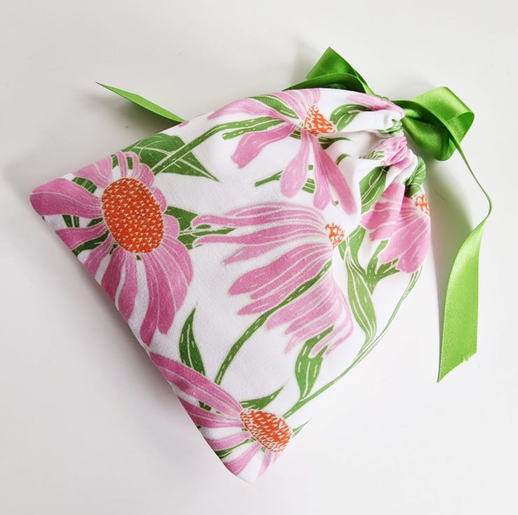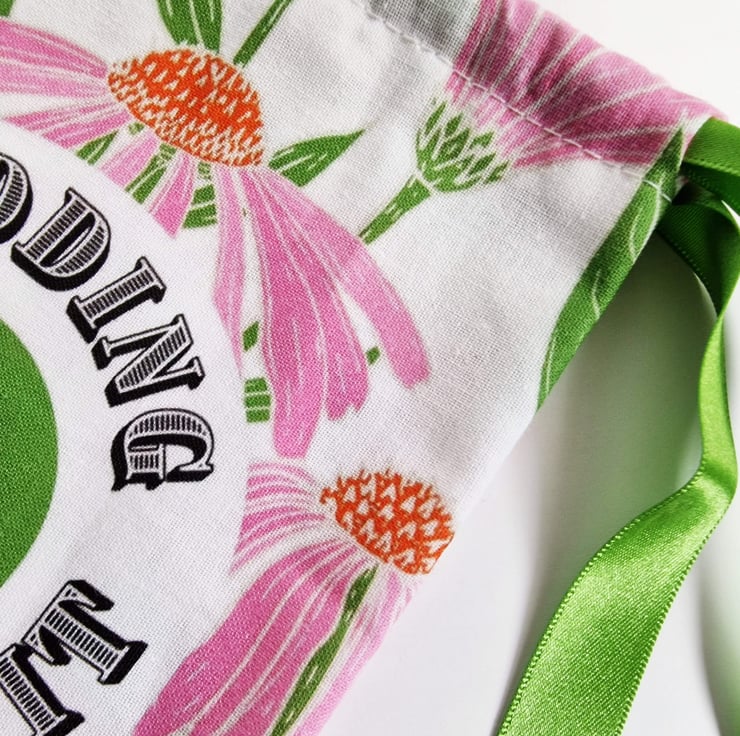 Introducing my handmade Wedding Recovery Kit pouch, a must-have accessory designed to bring comfort and rejuvenation during those special post-wedding/hen moments. Crafted with love and sustainability in mind, this pouch features graphic echinacea (immune-boosting!) flowers in a playful combination of pink and green.