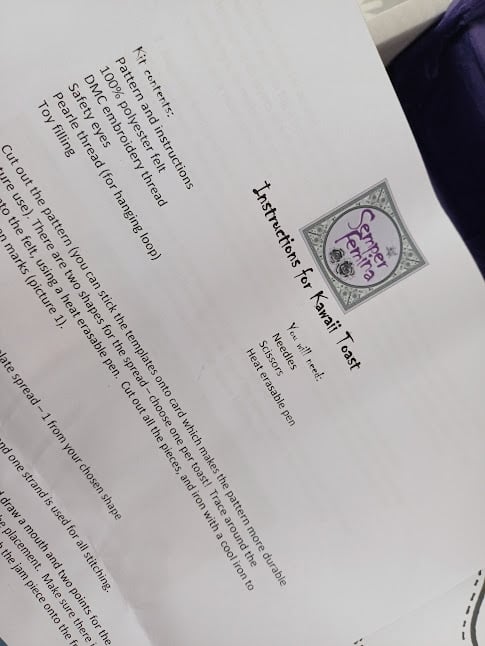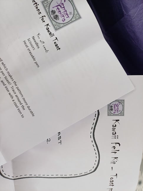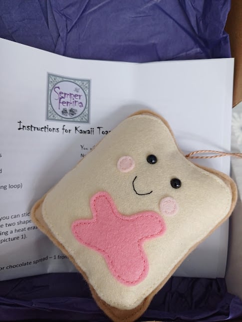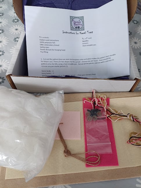 Each kit contains the supplies that you need to hand sew TWO Kawaii toast decorations: one for you and one to give away. The pattern is designed by me, with easy to follow, step by step instructions and photographs of each stage of the process. It is suitable for basic hand sewing skills.
