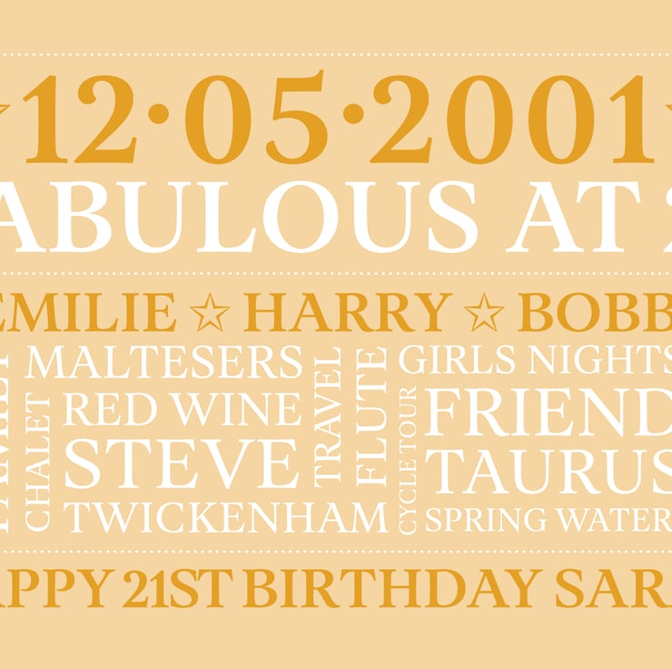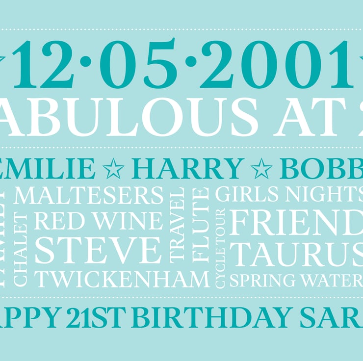 Personalised 21st Birthday Word Art - BD212