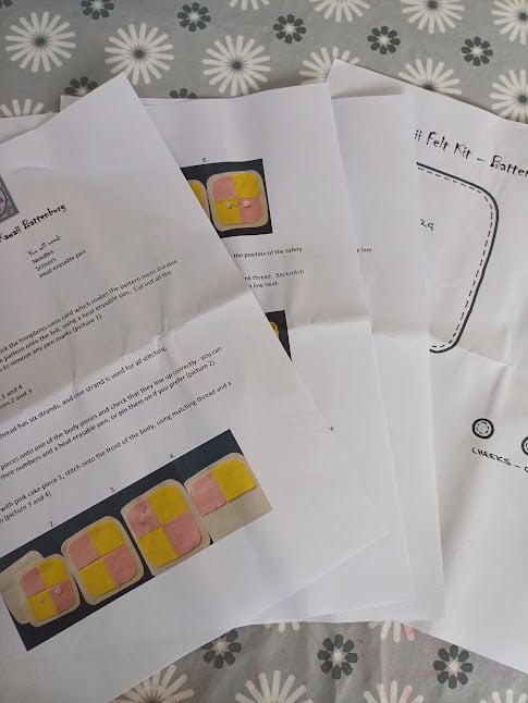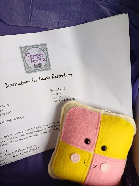 Each kit contains the supplies that you need to hand sew TWO Kawaii Battenburg cake decorations: one for you and one to give away. The pattern is designed by me, with easy to follow, step by step instructions and photographs of each stage of the process. It is suitable for basic hand sewing skills.