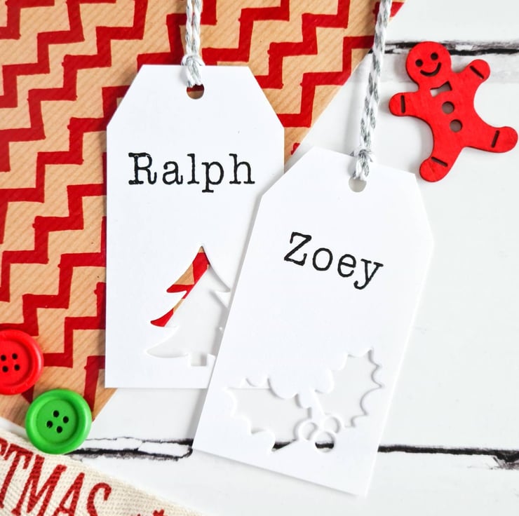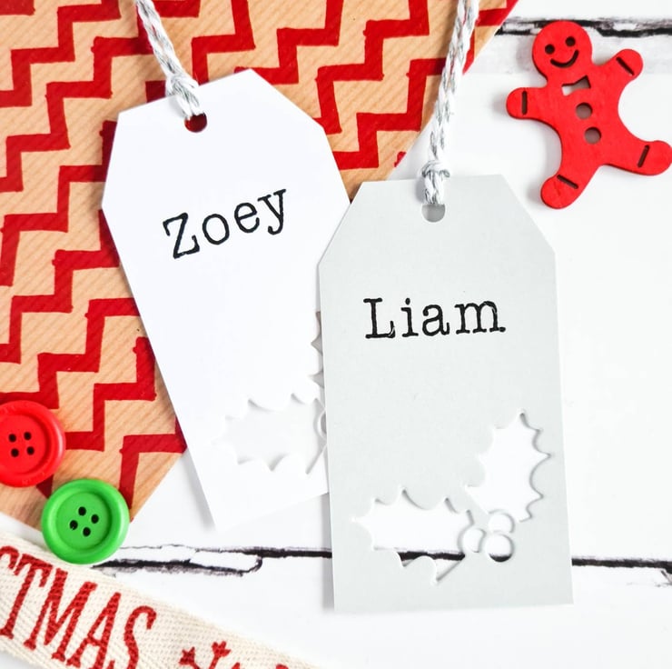 Festive Christmas gift tags in a traditional style, these lovely custom gift tags are personalised with any name. All of our Christmas tags are handmade, in a range of Scandi inspired festive colours. These merry gift tags are finished with a Holly or Tree shape, and grey and white twine. The perfect, personal touch to your Christmas gift wrap.