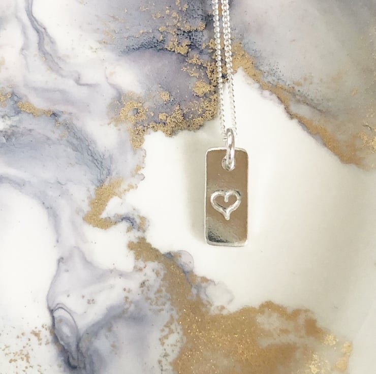 The silver is hand cut and finished, also the heart is hand stamped making each pendant completely unique to you.