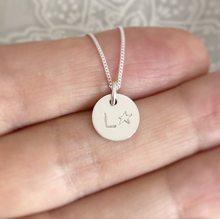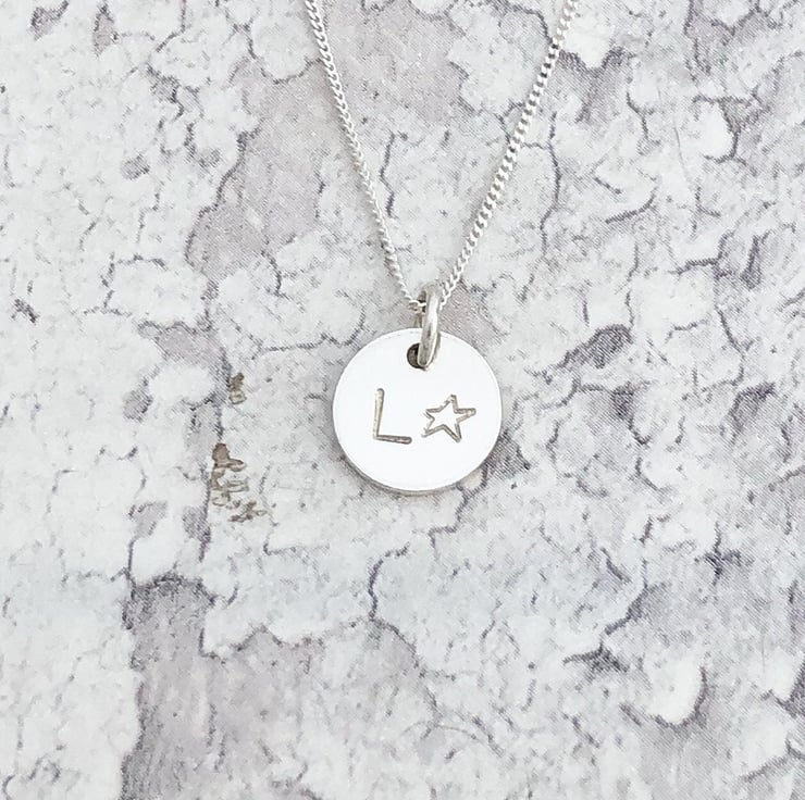 A hand crafted sterling silver star stamped and initial necklace.
