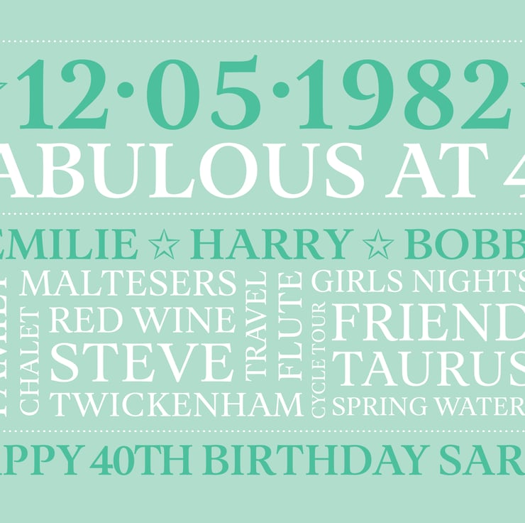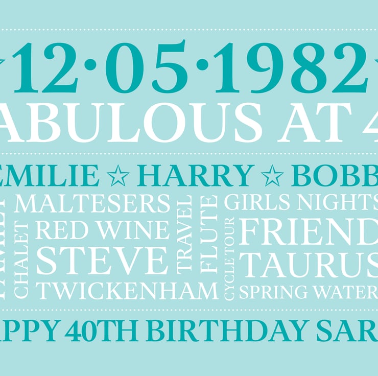 - About 30 personal words (If there are certain words that are particularly important please add a star next to them in your list and I will make these words the biggest and most noticeable.)