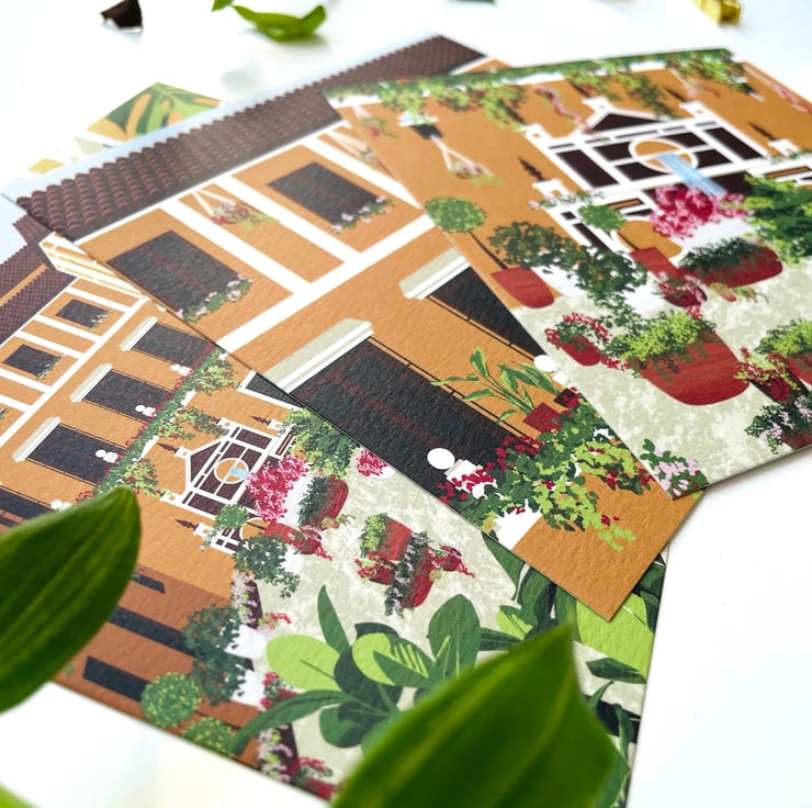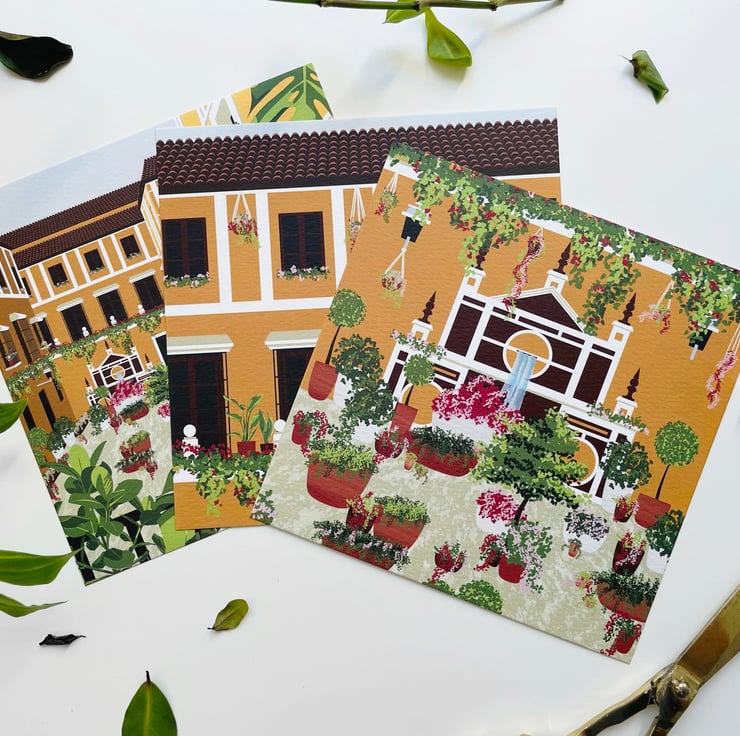 A set of Seville, Spain courtyard and plants illustrations perfect to display together or send/use individually.