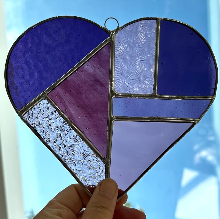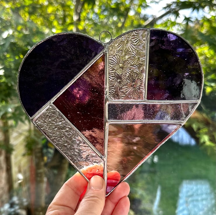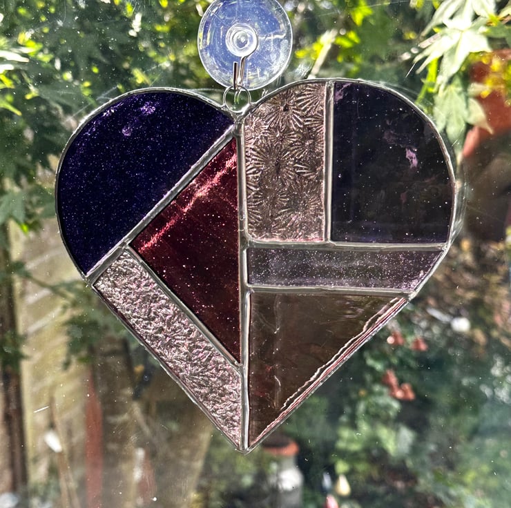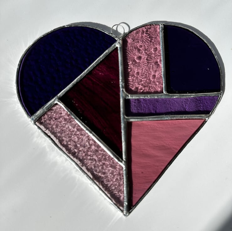 This beautiful heart is made from a lovely selection of pink, purple and mauve stained glass.