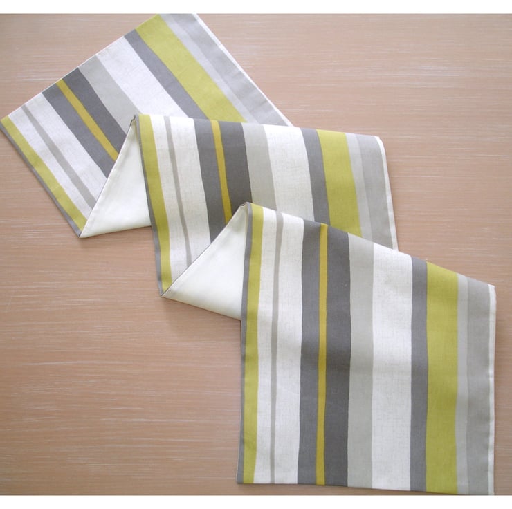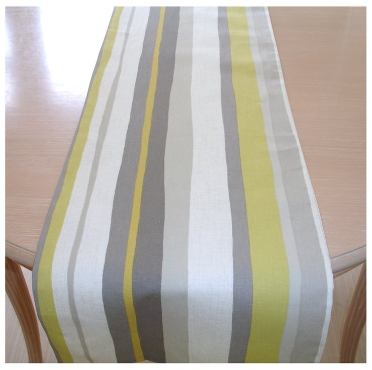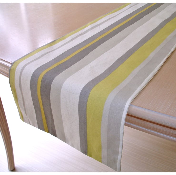 4ft Table Runner Stripes Yellow and Grey Mustard Ochre Striped Stripe
