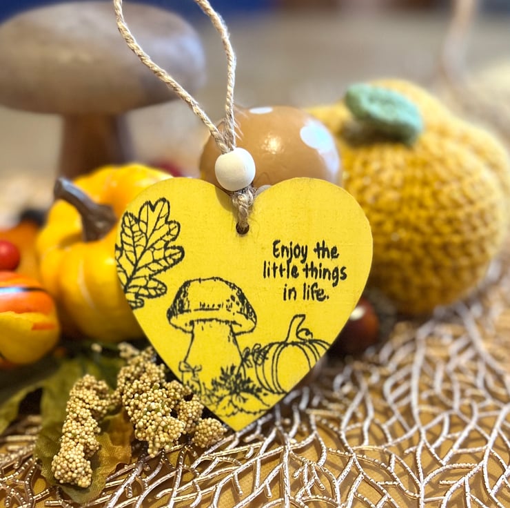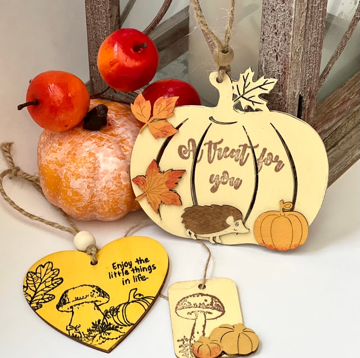 These make a lovely gift or home decoration for the autumn season. The smaller wooden decoration is perfect to use as a gift tag first, before it can become a keepsake and decoration around the home.
