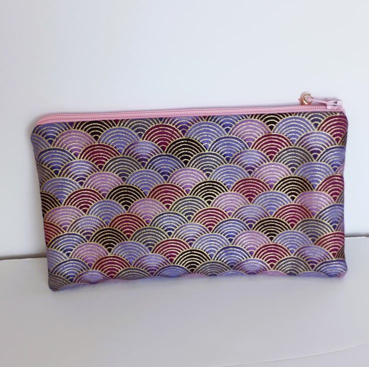 Made from 100% cotton fabric, the pouch is fully lined with cotton lining and has a metal & nylon zip. There is also a layer of interfacing to increase stability. It is finished off with a zip pull, which can be removed if required.