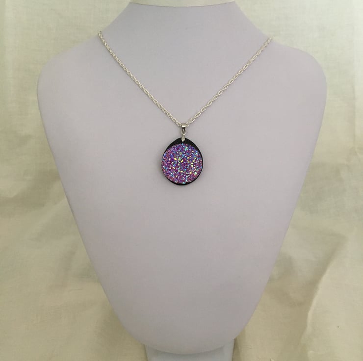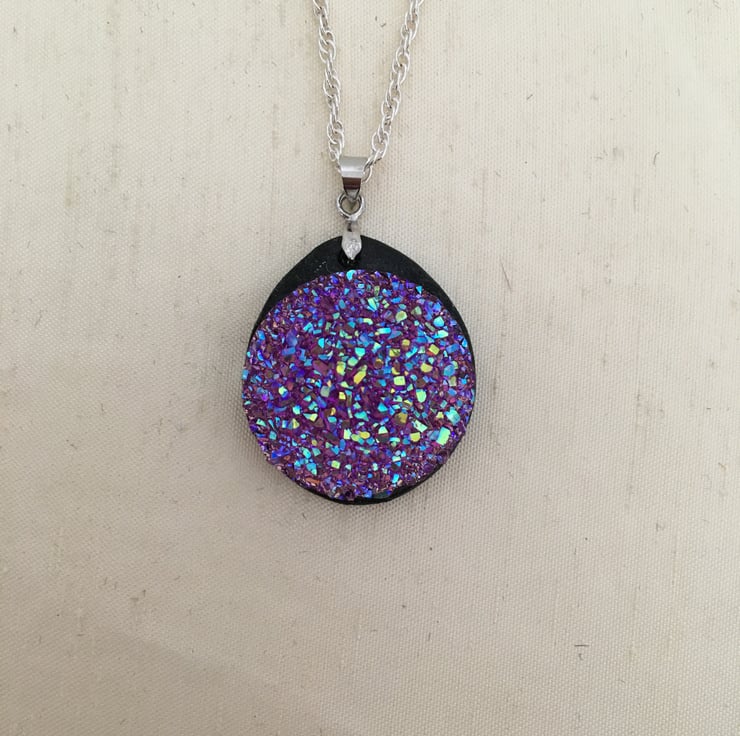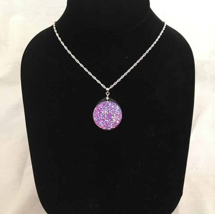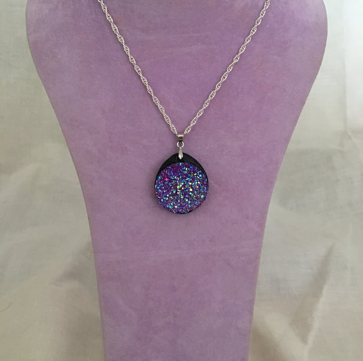 Very pretty lilac blue mix resin druzy pendant.