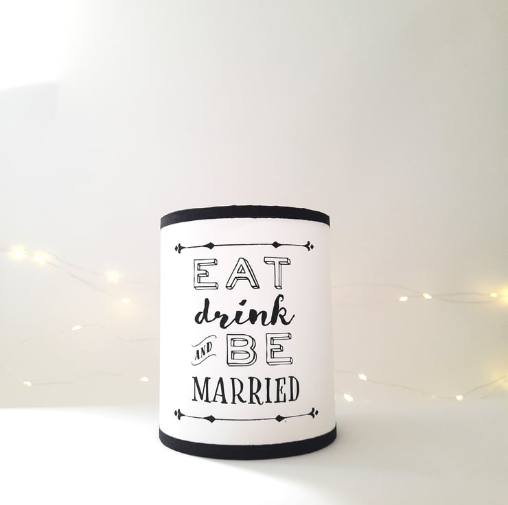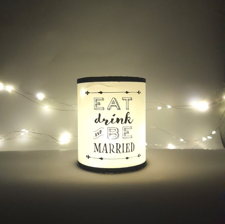 This fun Wedding table lantern is the perfect addition to decorate your tables! The cute "Eat Drink and Be Married" design make it really special along with the subtle glow that creates a calm and sweet ambience.
