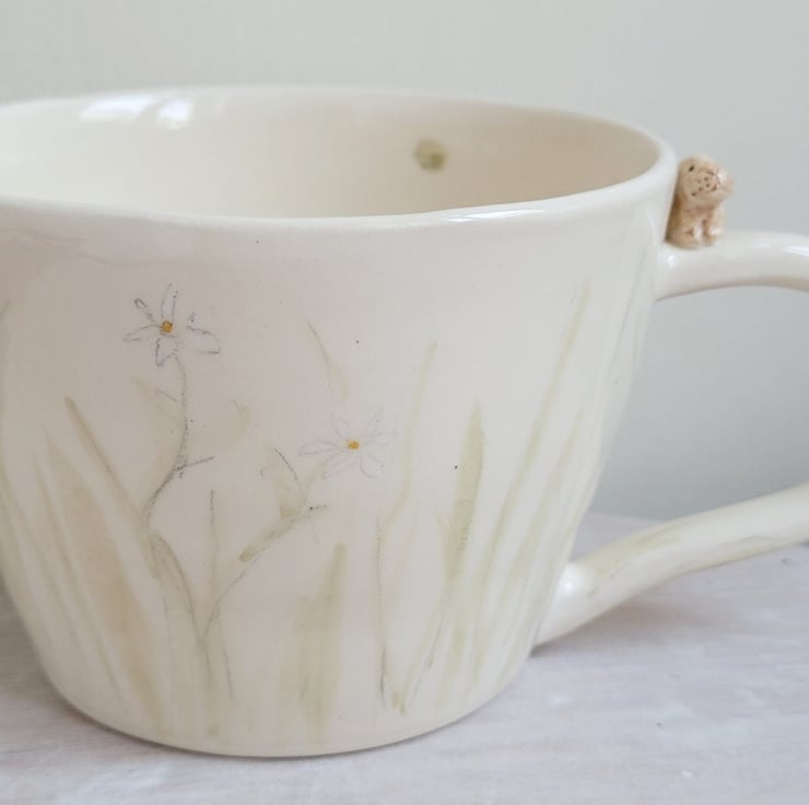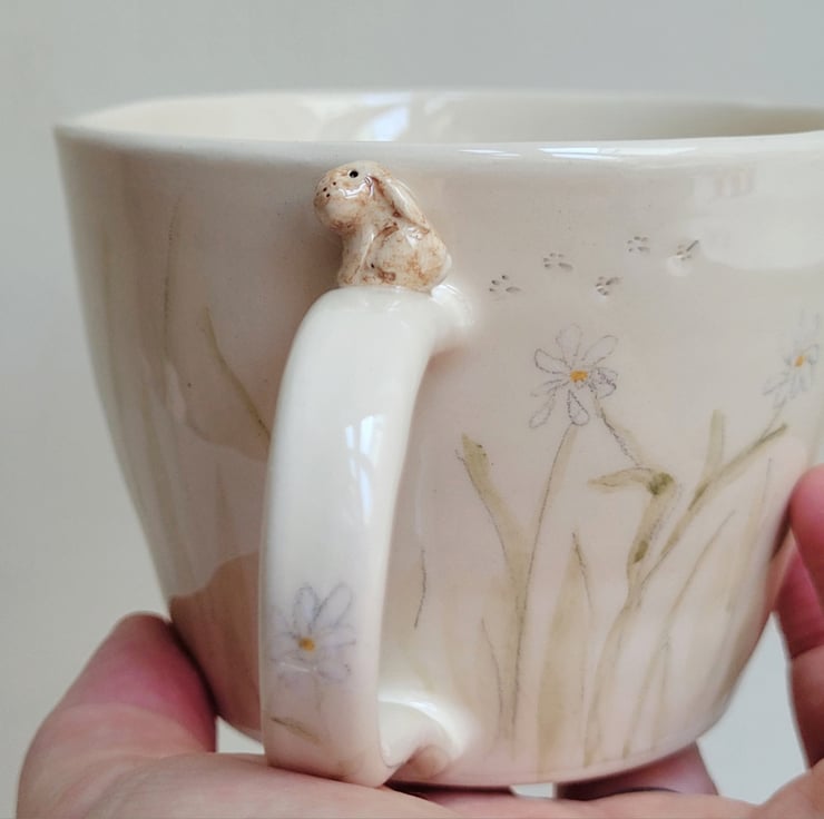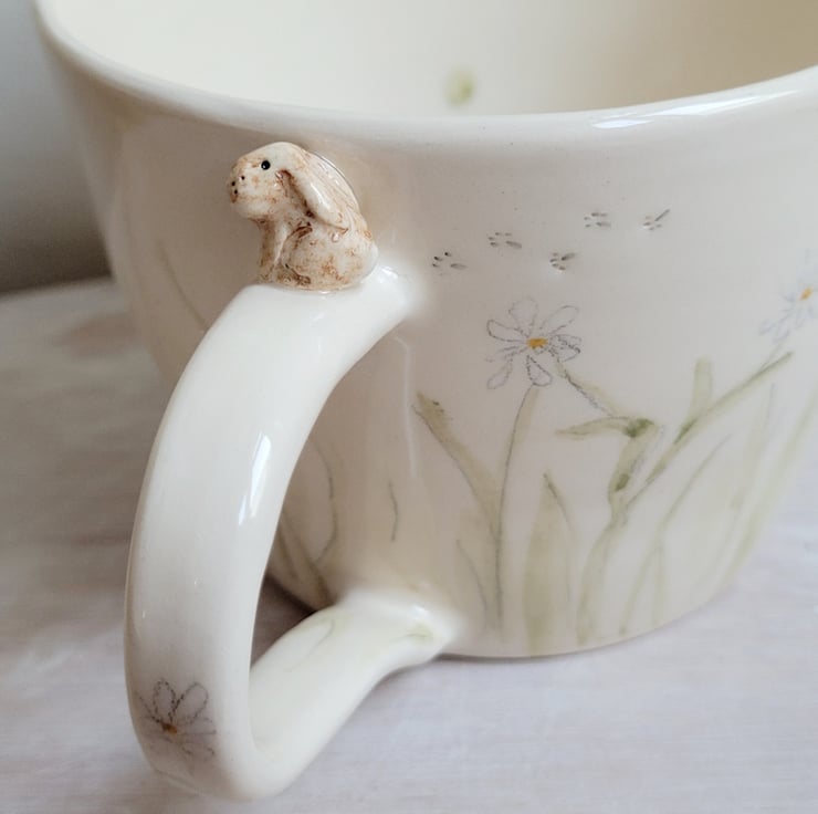 I thought it would be a good idea to make a unique cup with a little bunny rabbit sitting on the handle to make you smile and add some fun to a lovely cup of tea or coffee