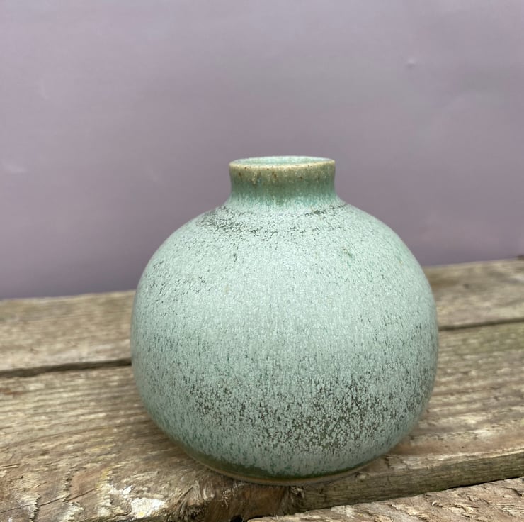 A spherical bottle form, wheel thrown in my small garden studio in Chester.