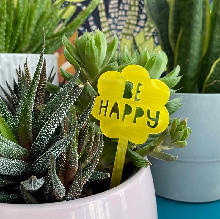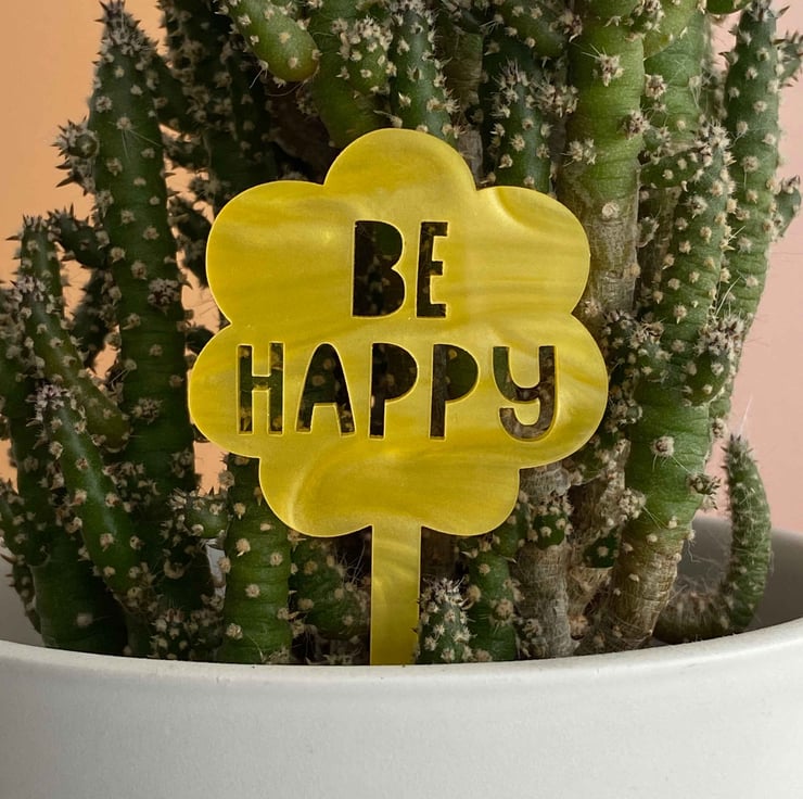 I designed and made this Be Happy house plant decoration either to keep for yourself if you’re a crazy plant lady, indoor plant lover, love a motivational quote, or you want a gift for mum, unique gifts for women, or the indoor gardener in your life. Made of food safe acrylic, this plant stake is going to be durable and long-lasting, so you can be sure it will bring happiness for years to come!