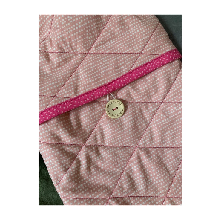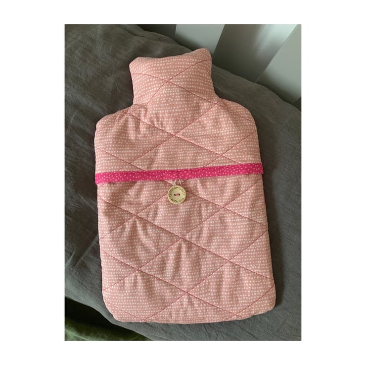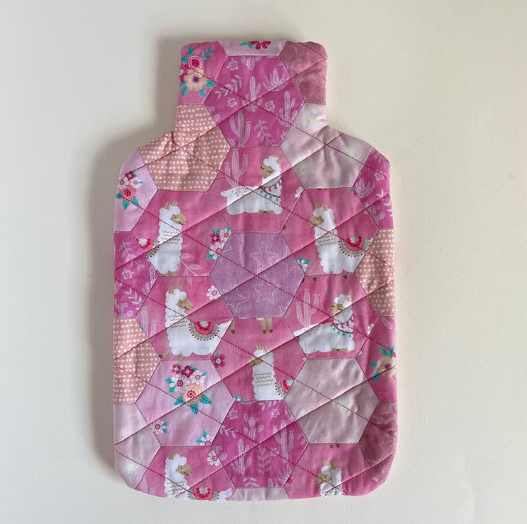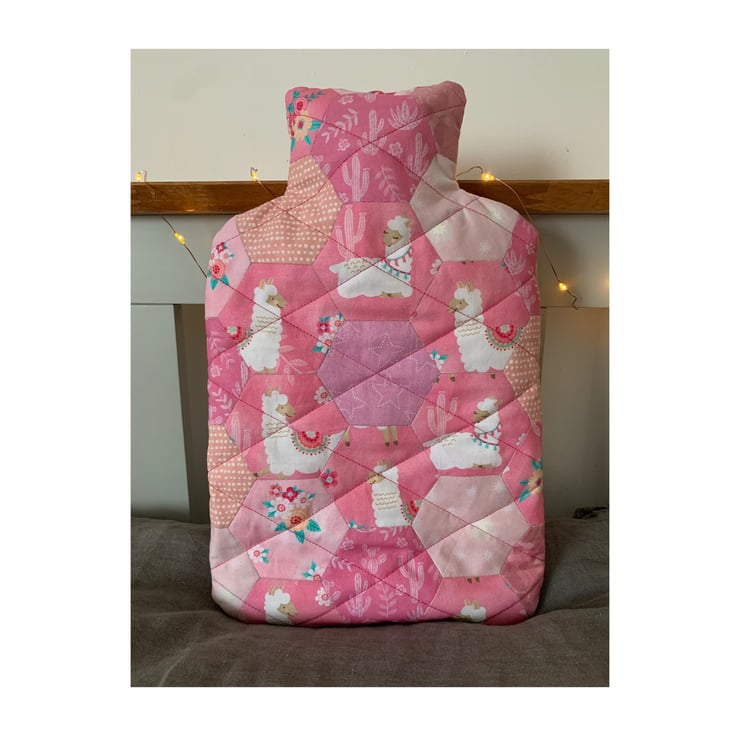 Stay warm this autumn with this cute llama hot water bottle cover. It is made using English Paper Piecing technique. Quilted for soft and cosy touch.
