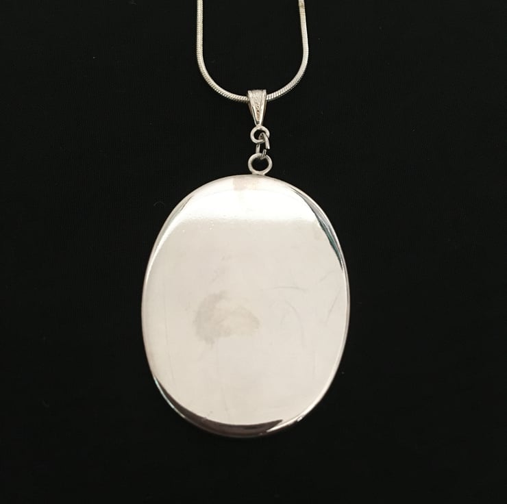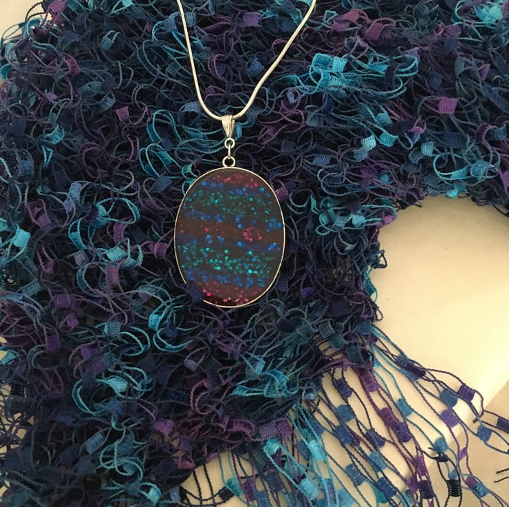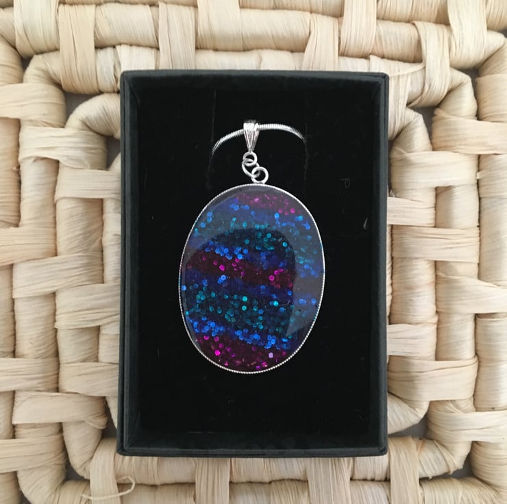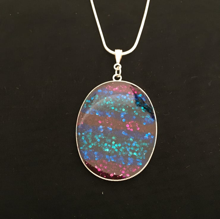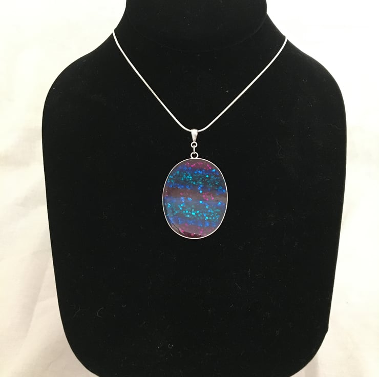 Beautiful handcrafted tri-coloured oval pendant in a quality silver plated setting.