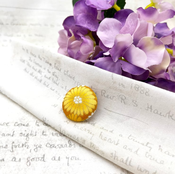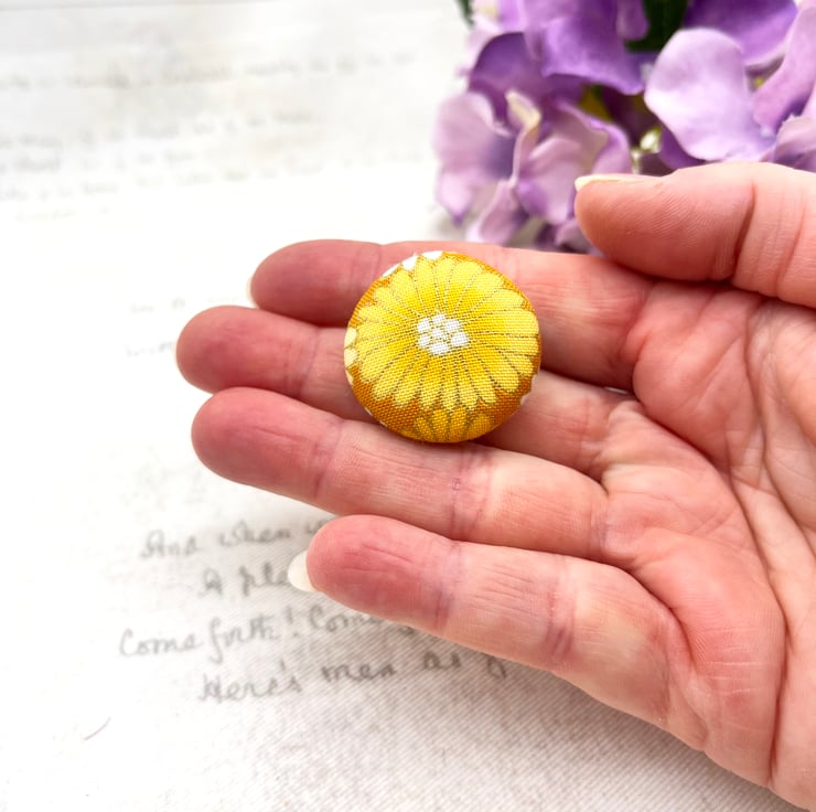 Yellow Japanese chrysanthemum fabric button brooch autumn lovers jewellery