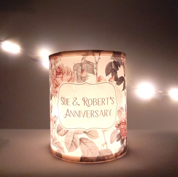 This unique Anniversary lantern is the perfect addition to your party table decorations, but it is suitable for any occasion! The lovely floral pattern with roses make it really special along with the subtle glow that creates a calm and sophisticated ambience.
