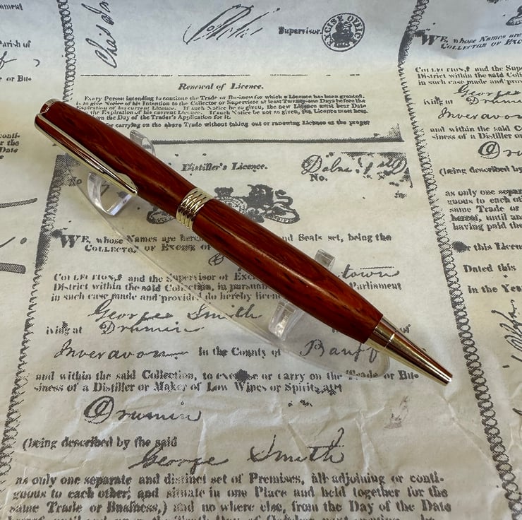 This is a Gold Streamline Twist Pen with a Padauk body finished in a polished coating; a stylish and easy to use pen due to its light weight and grip size.