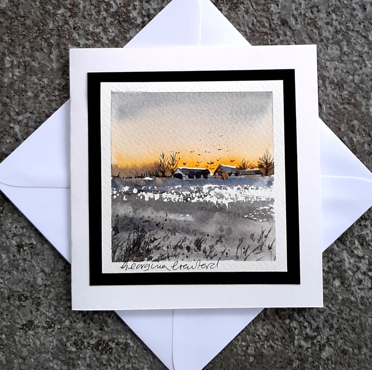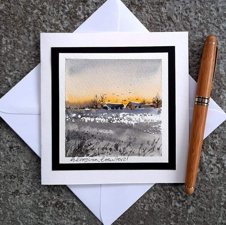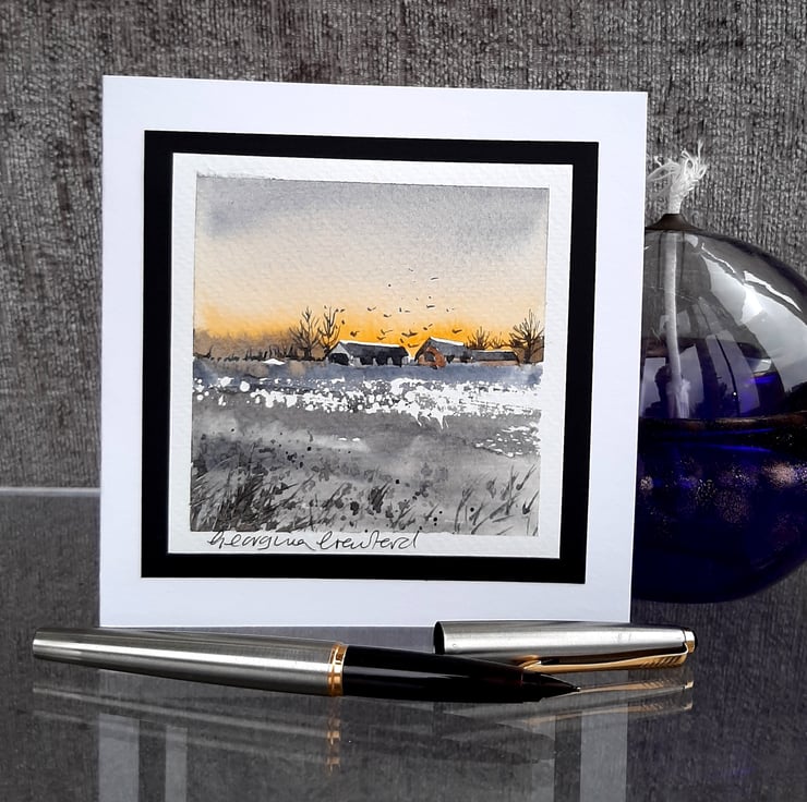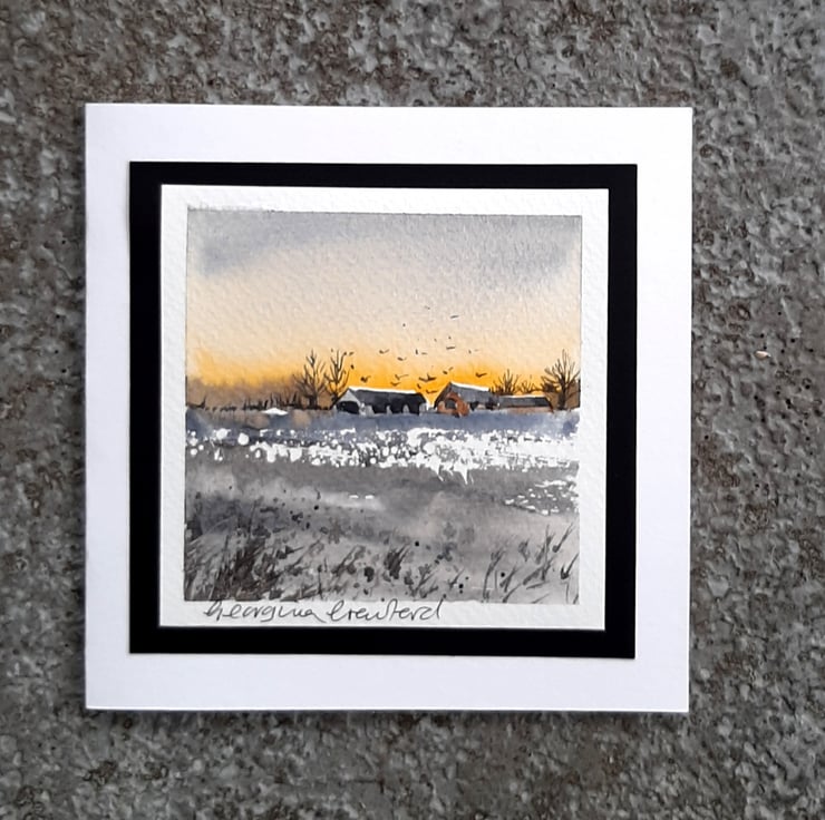 Handpainted Watercolour, mounted onto black paper then soft-white Card.