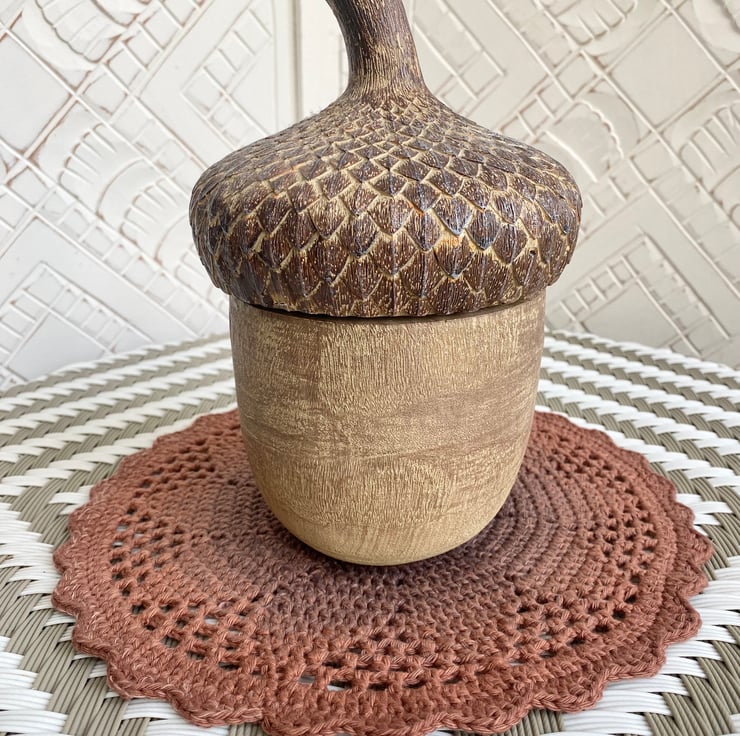 I used 100% cotton yarn to create this rich brown table mat. The design incorporates a beautiful petal flower within a filet circle and the flower is highlighted by the shades of red yarn I used.